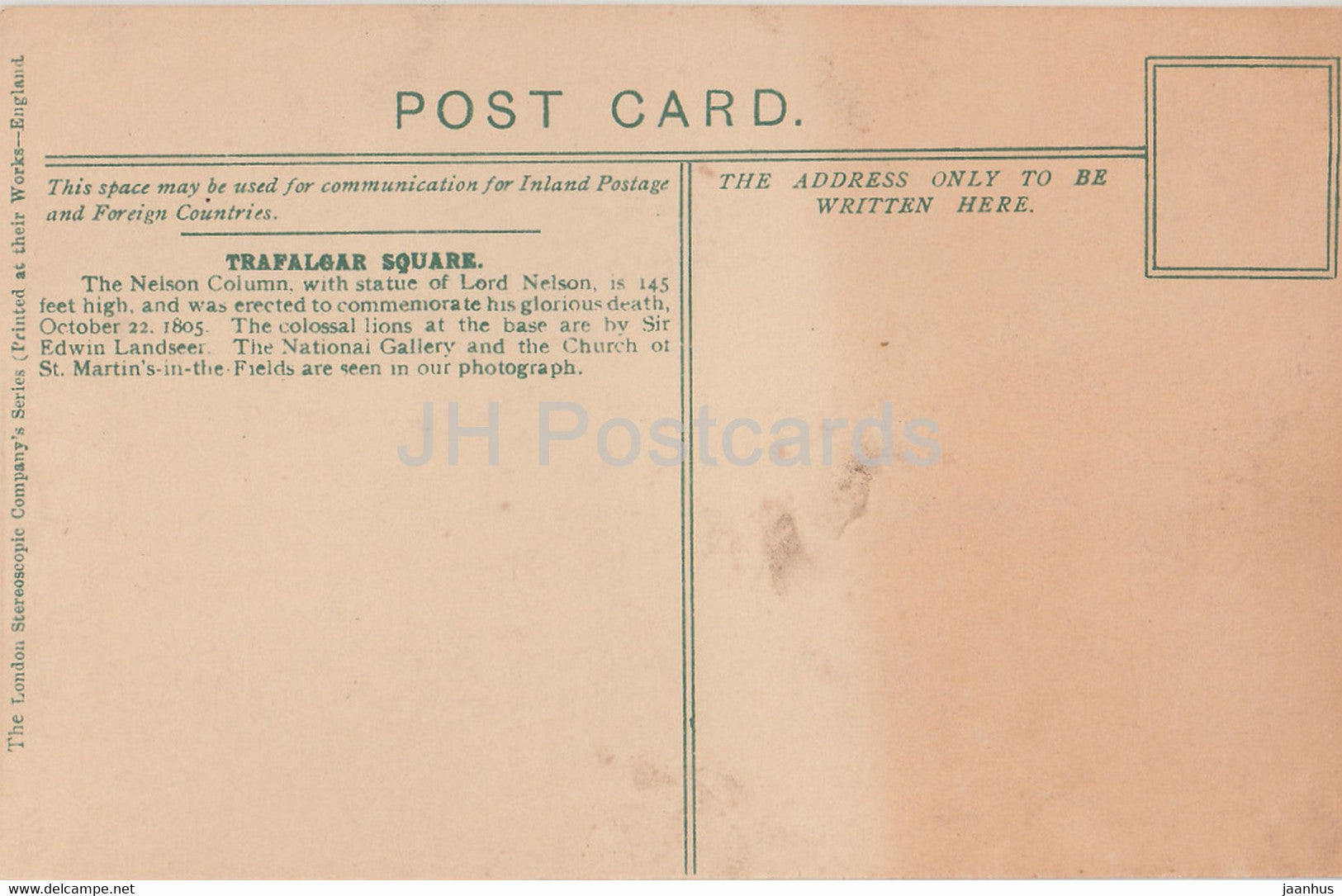 Londres - Trafalgar Square - bus - London Stereoscopique Company - carte postale ancienne - Angleterre - Royaume-Uni - inutilisé