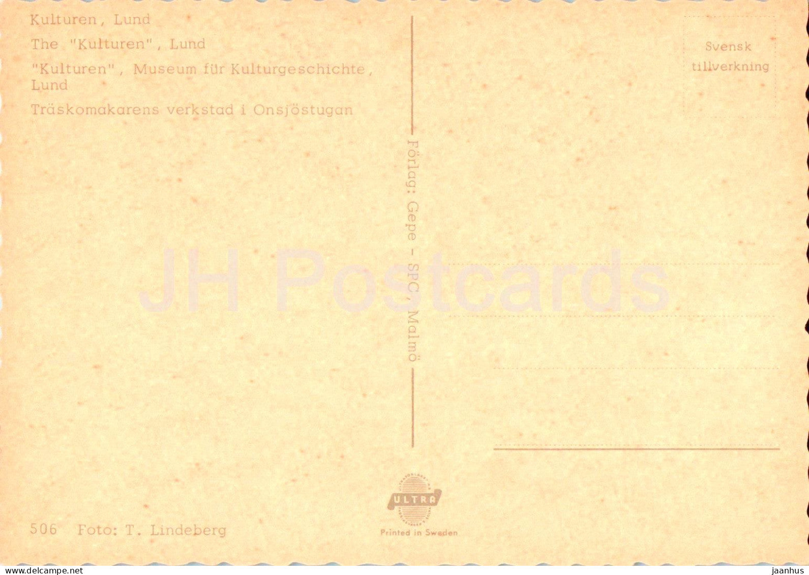 Lund - Kulturen - Traskomakarens verkstad i Onjostugan - musée - 506 - Suède - inutilisé