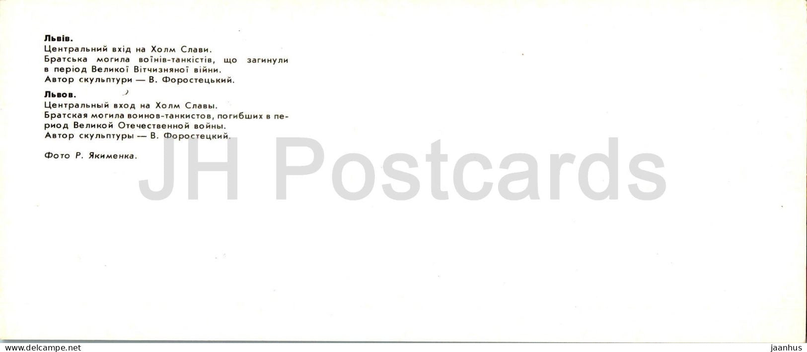 Lviv - entrée centrale de la Colline de la Gloire - charnier de soldats blindés morts pendant la Seconde Guerre mondiale - 1984 - Ukraine URSS - inutilisé