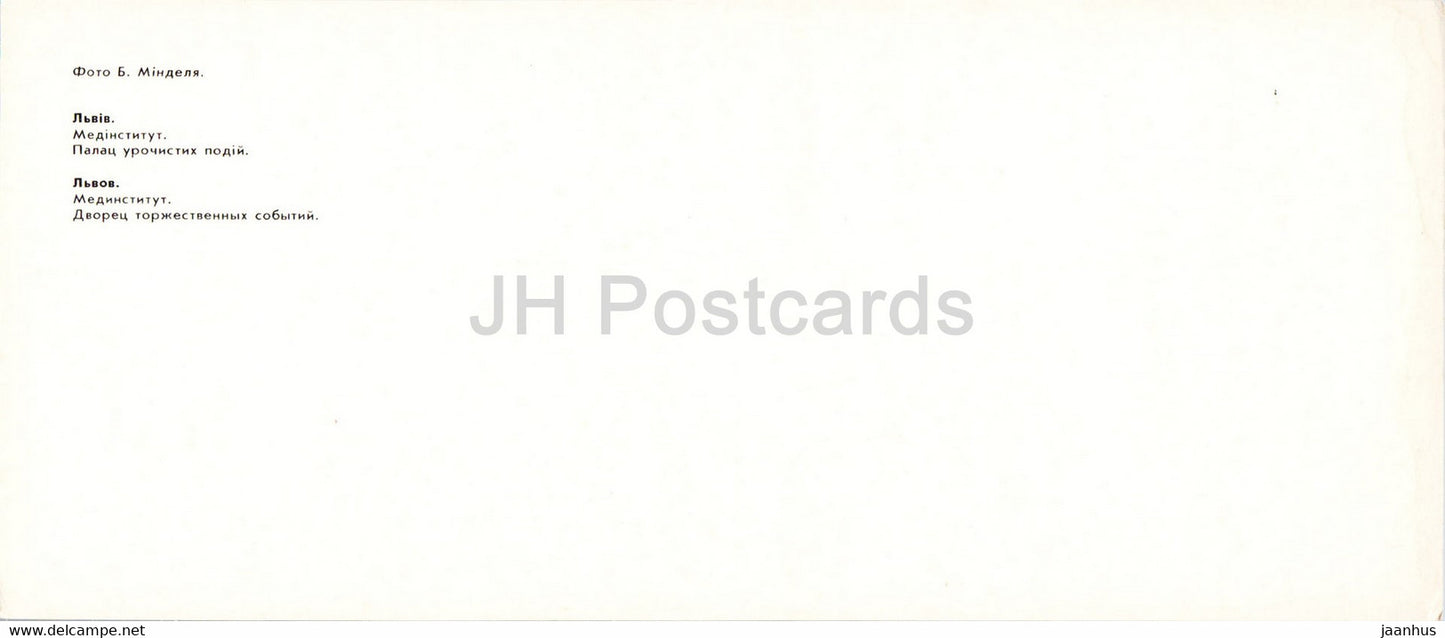 Lviv - Lvov - Institut médical - Palais de cérémonie - 1985 - Ukraine URSS - inutilisé