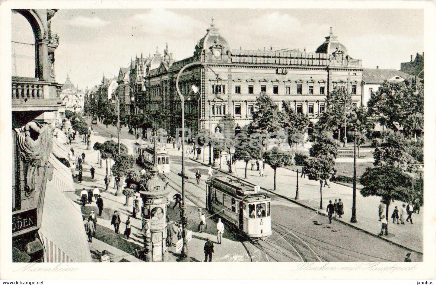 Mannheim - Planken mit Hauptpost - tramway - 1953 - carte postale ancienne - Allemagne - utilisé
