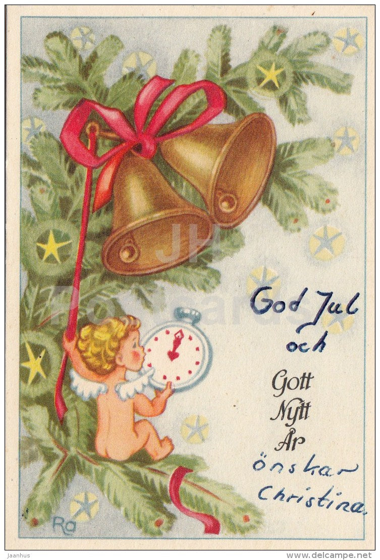 mini carte de vœux de Noël - cloche de Noël - ange - Suède - utilisée