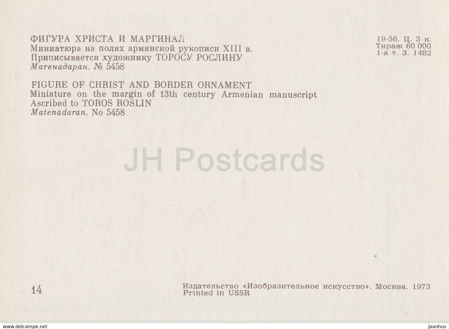 Miniatures dans les manuscrits arméniens - Figure du Christ et ornement de bordure - Arménie - 1973 - Russie URSS - inutilisé