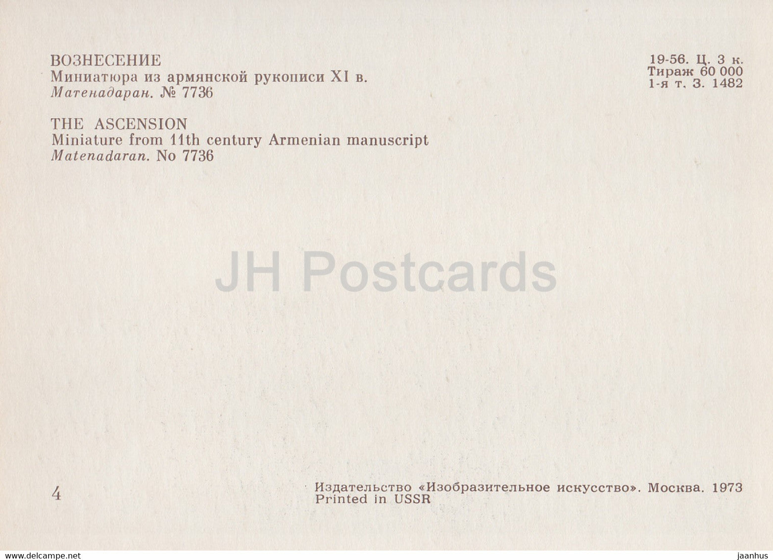 Miniatures dans les manuscrits arméniens - L'Ascension - Matenadaran - Arménie - 1973 - Russie URSS - inutilisé