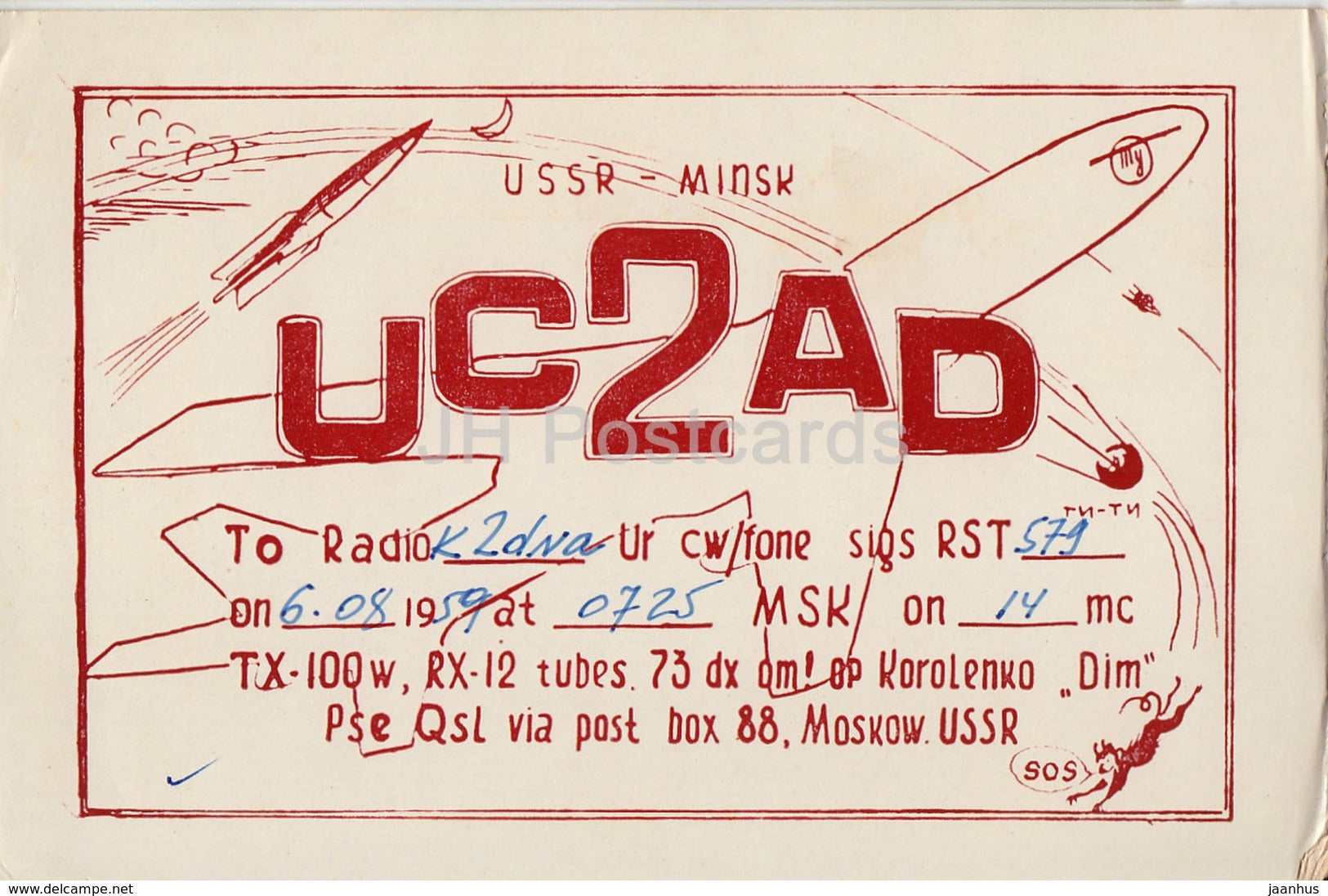 Minsk Belarus UC2AD - Carte QSL - 1959 - Biélorussie URSS - utilisée