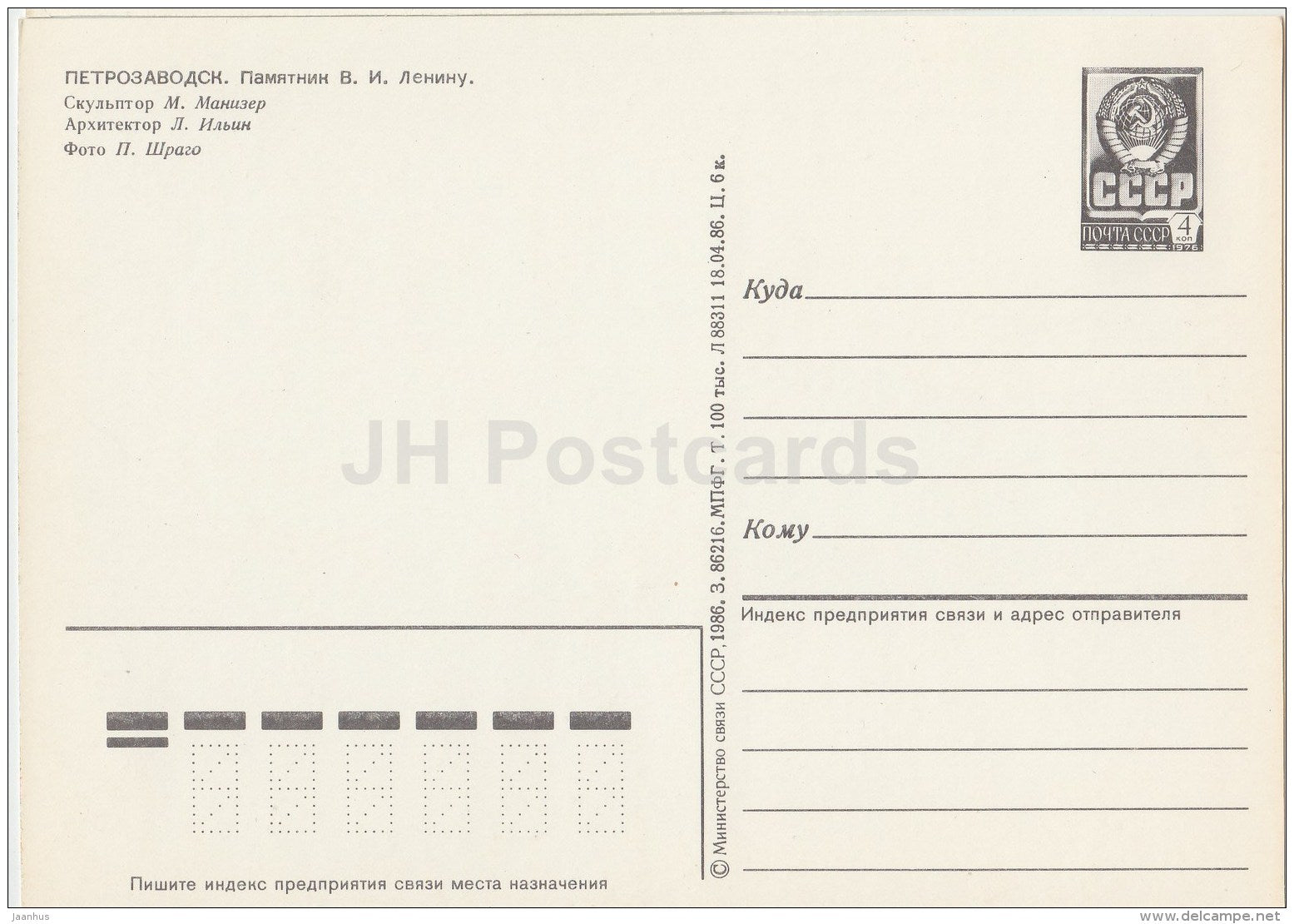 monument à Lénine - Petrozavodsk - entier postal - 1986 - Russie URSS - inutilisé