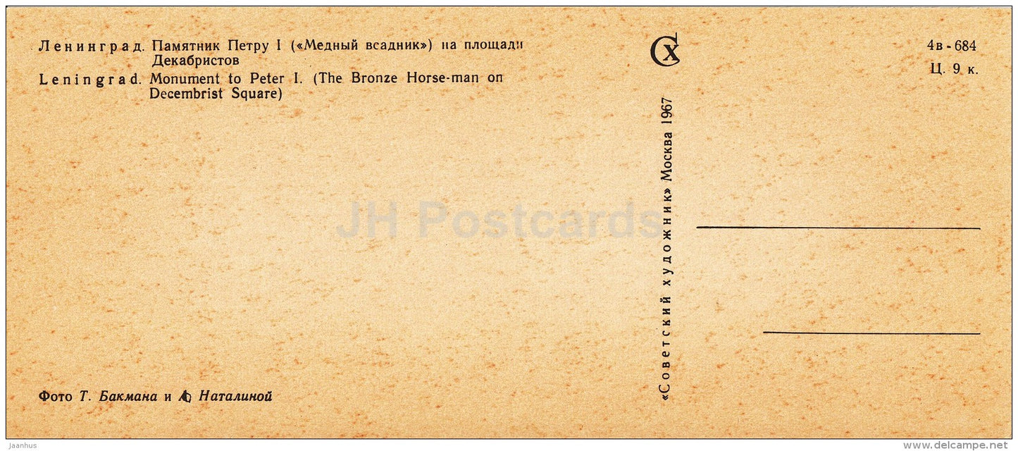 monument à Pierre Ier - Le Cavalier de Bronze - Leningrad - Saint-Pétersbourg - 1967 - Russie URSS - inutilisé