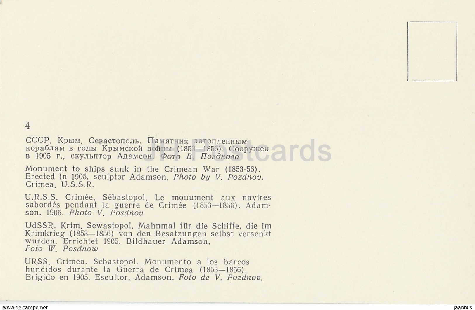 Monument aux navires coulés pendant la guerre de Crimée 1853-1856 - Crimée - Ukraine URSS - inutilisé