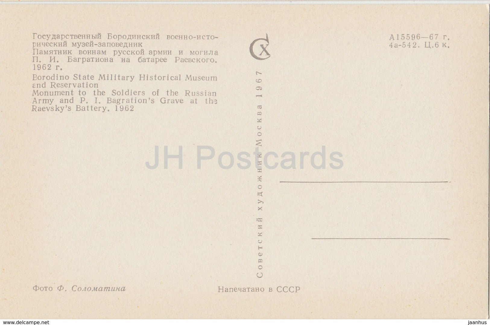 Monuments du champ de Borodino - Monument aux soldats de l'armée russe et de Bagration - 1967 - Russie URSS - inutilisé