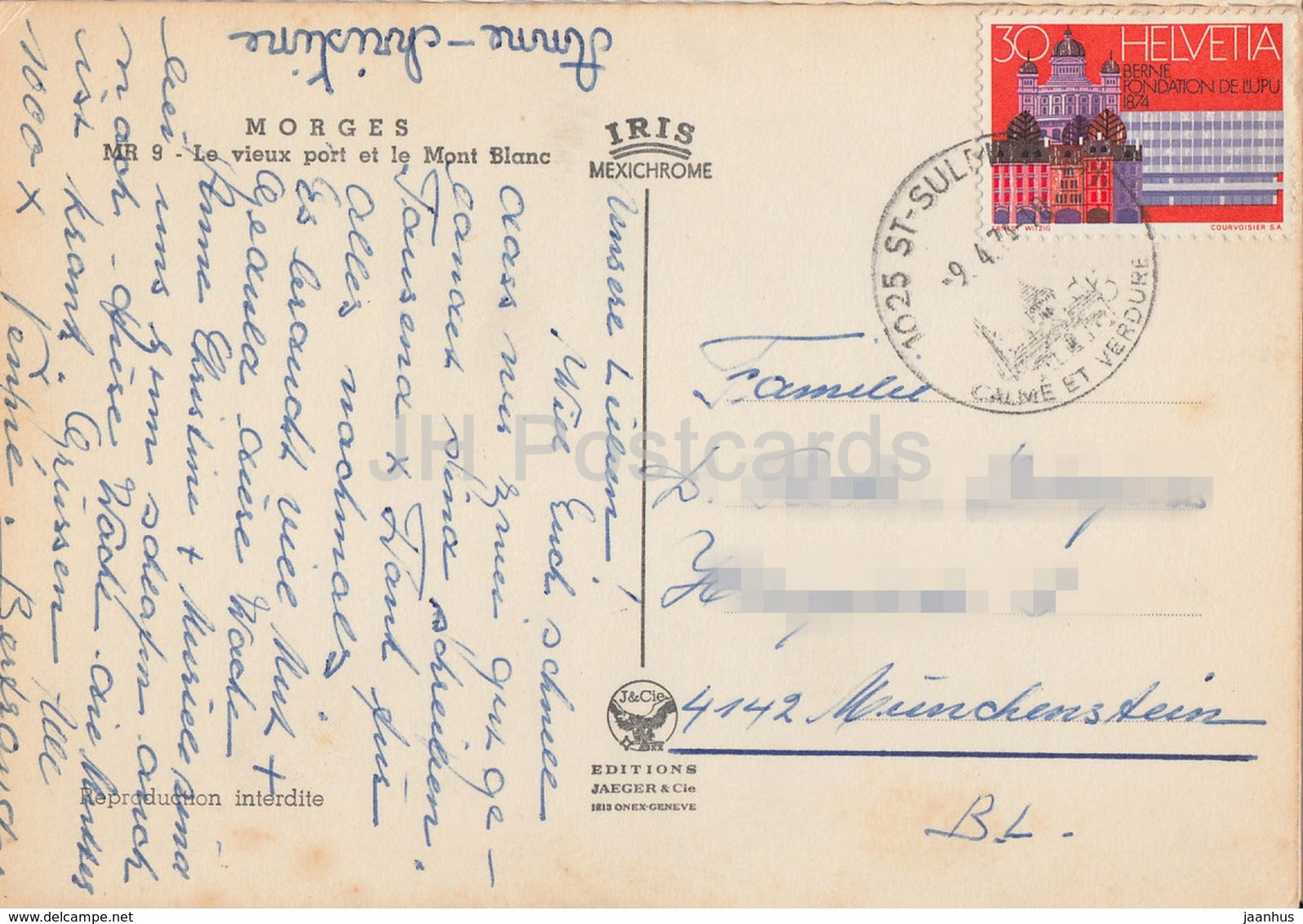 Morges - Le vieux Port et le Mont Blanc - voilier - MR 9 - 1974 - Suisse - d'occasion