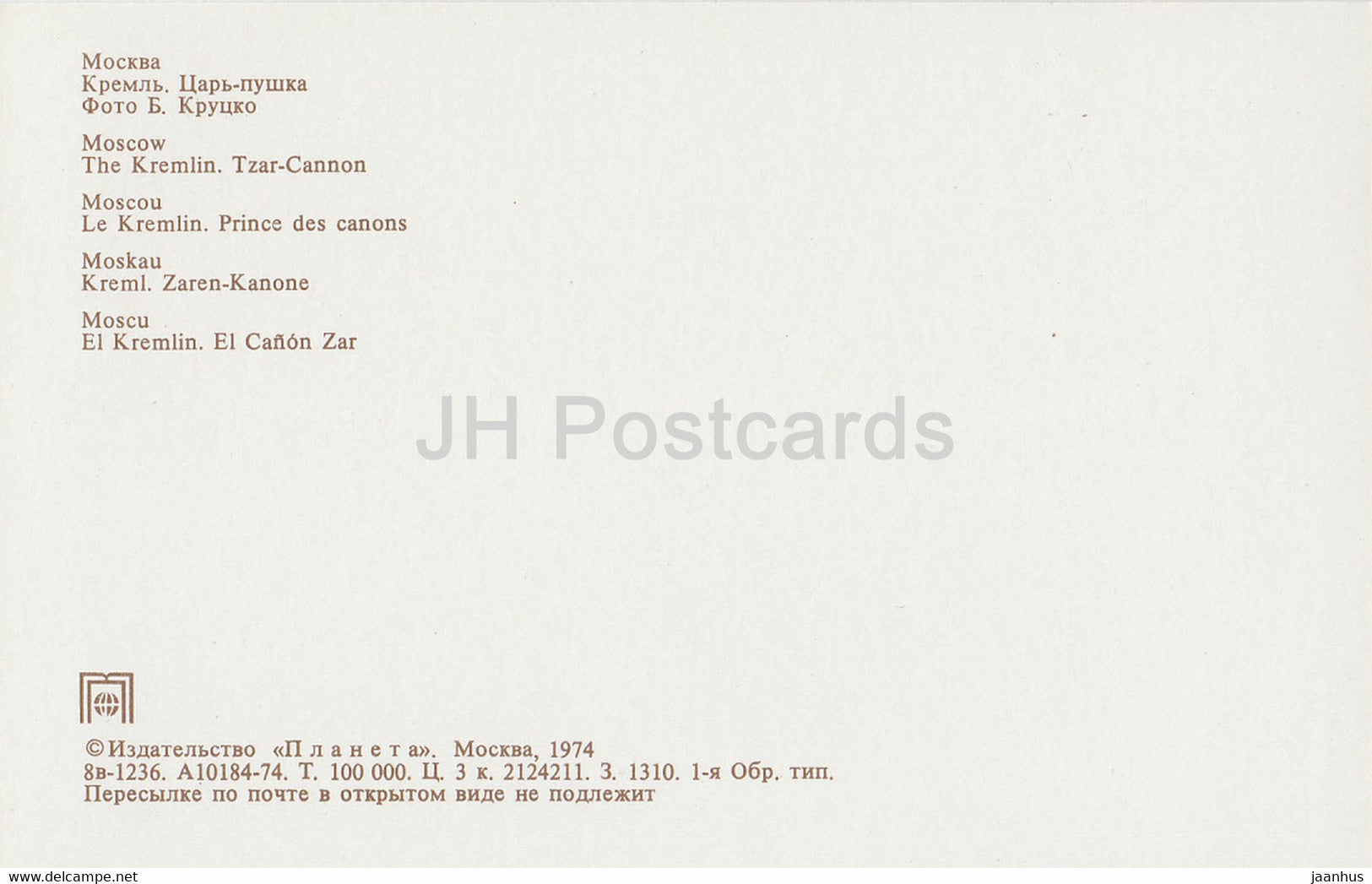 Moscou - Kremlin - Tsar Cannon - 1974 - Russie URSS - inutilisé