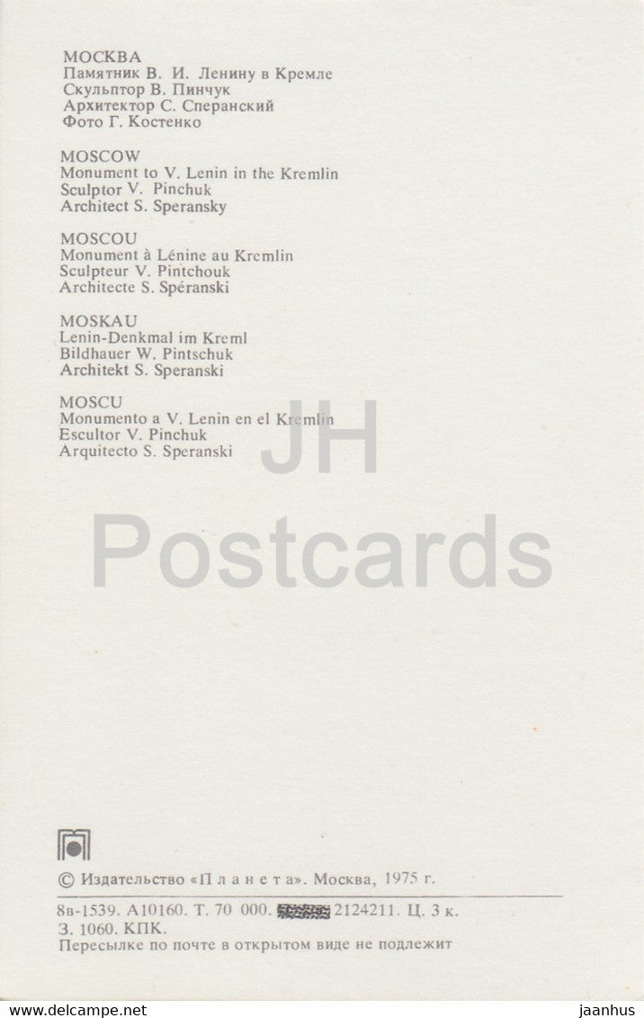 Moscou - Monument à Lénine au Kremlin - 1975 - Russie URSS - inutilisé