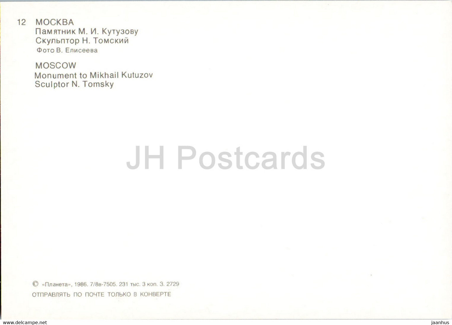 Moscou - monument à Mikhaïl Koutouzov - cheval - 1986 - Russie URSS - inutilisé