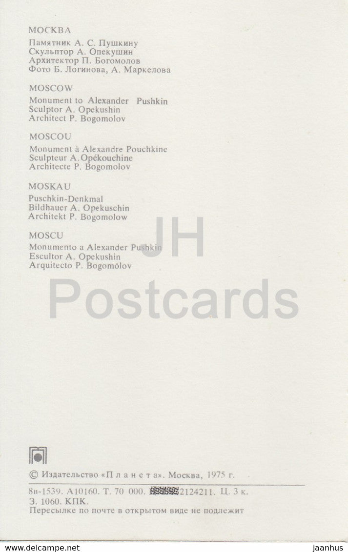 Moscou - monument au poète russe Pouchkine - 1975 - Russie URSS - inutilisé