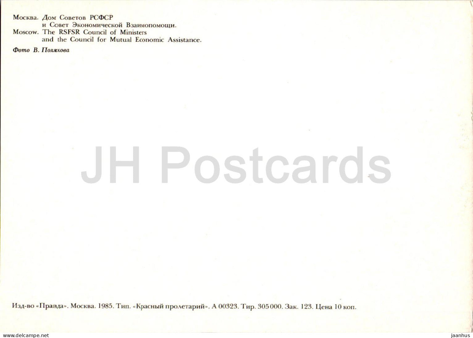 Moscou - Conseil des ministres de la RSFSR - 1985 - Russie URSS - inutilisé