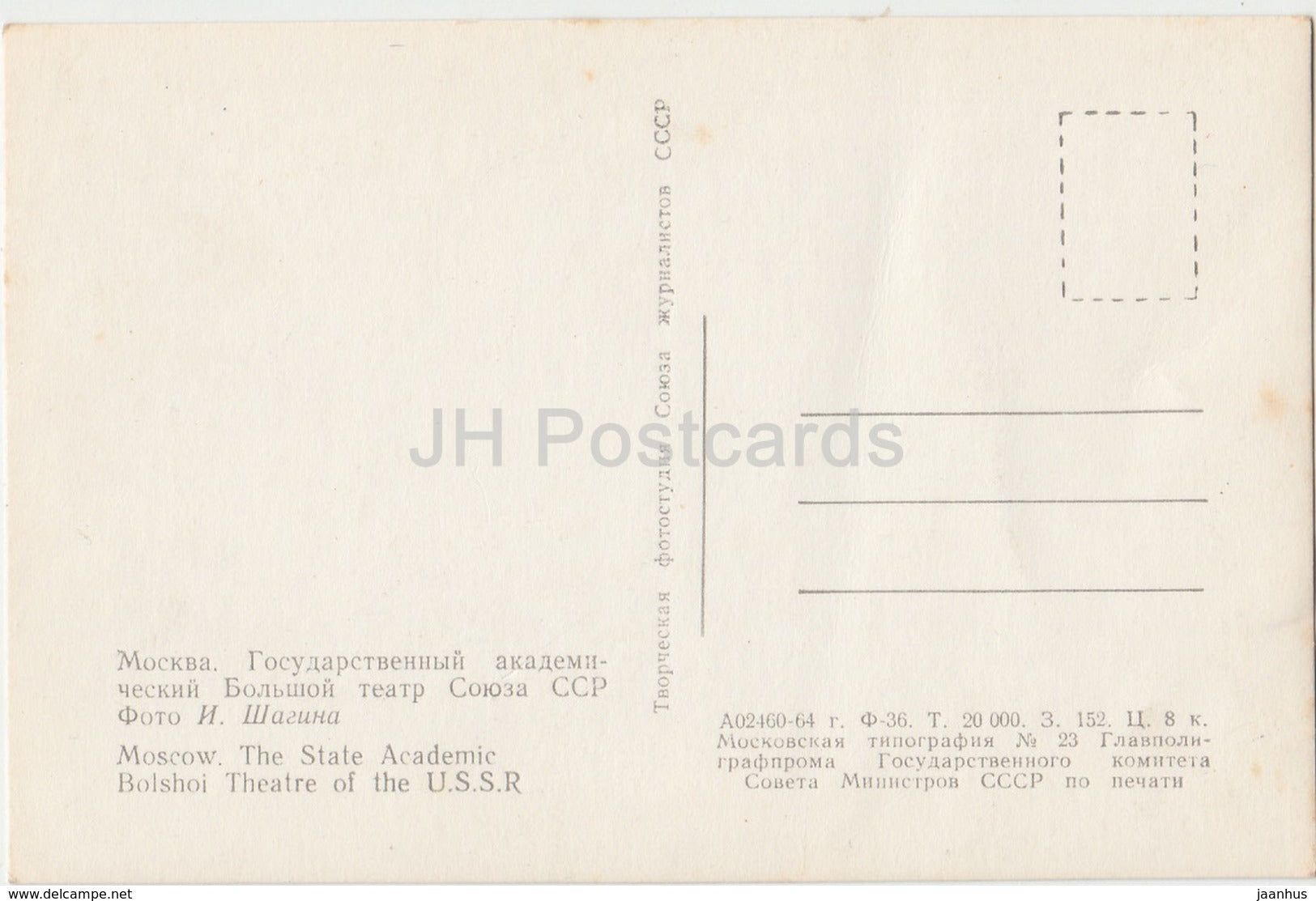 Moscou - Théâtre académique national du Bolchoï - trolleybus - 1964 - Russie URSS - inutilisé