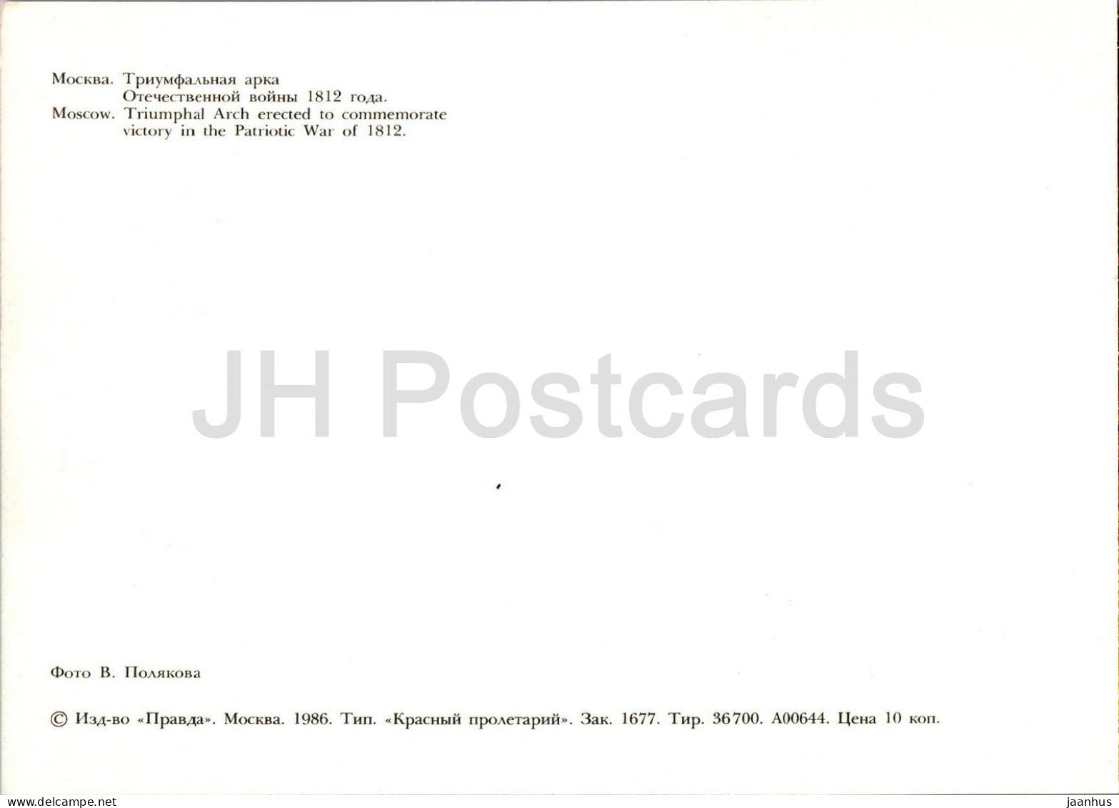 Moscou - Arc de triomphe érigé pour commémorer la victoire dans la guerre patriotique de 1812 - 1986 - Russie URSS - inutilisé