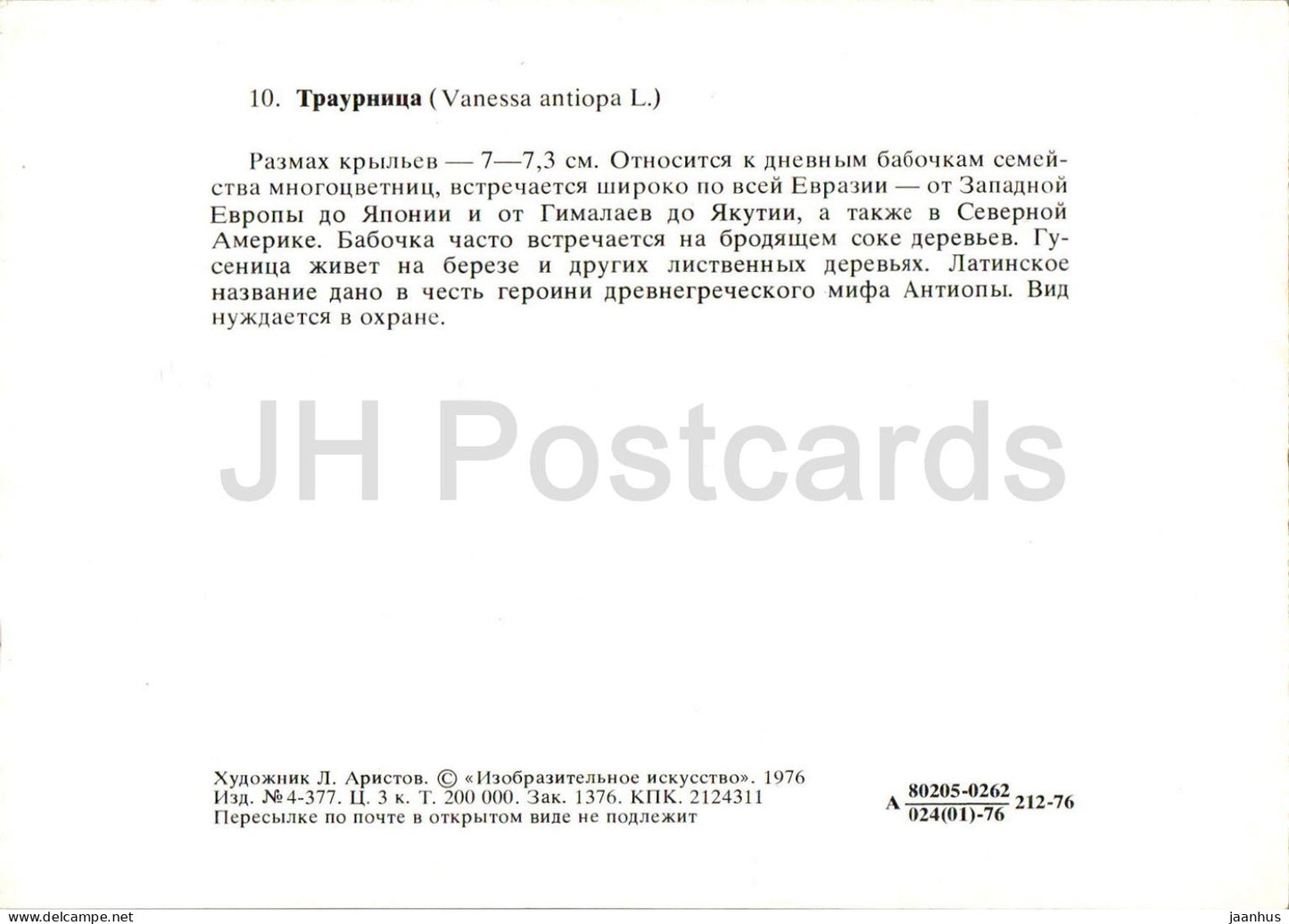 Manteau de deuil - Vanessa antiopa - papillon - papillons - 1976 - Russie URSS - inutilisé