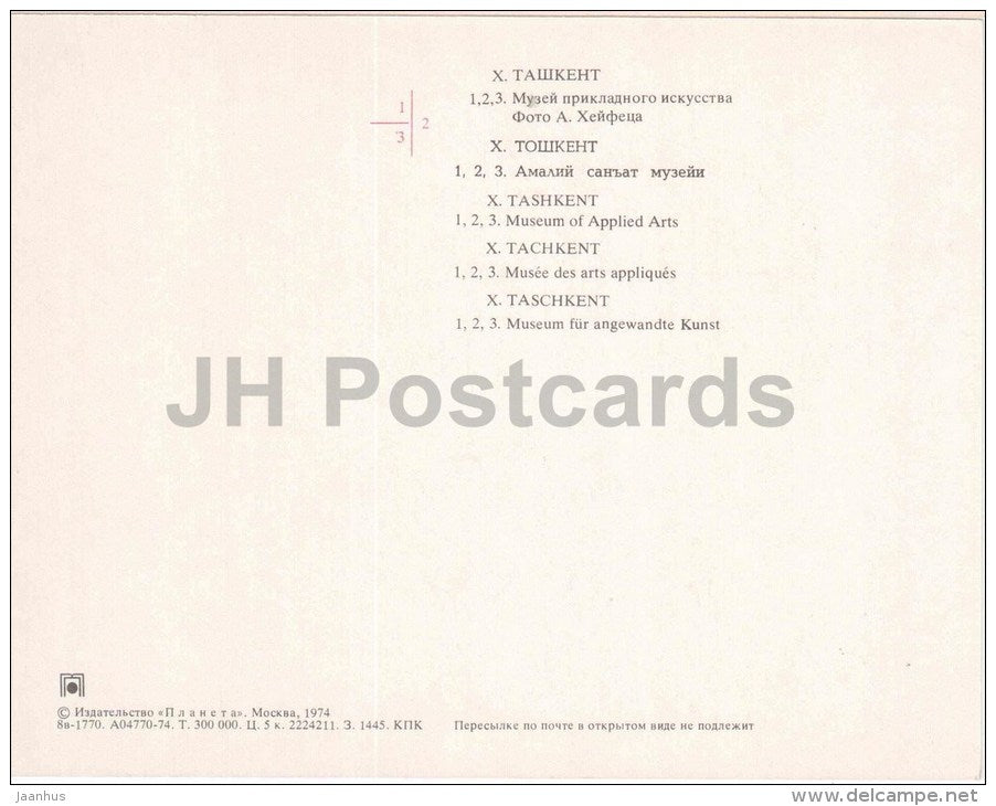 Musée des arts appliqués - Tachkent - carte grand format - 1974 - Ouzbékistan URSS - inutilisée
