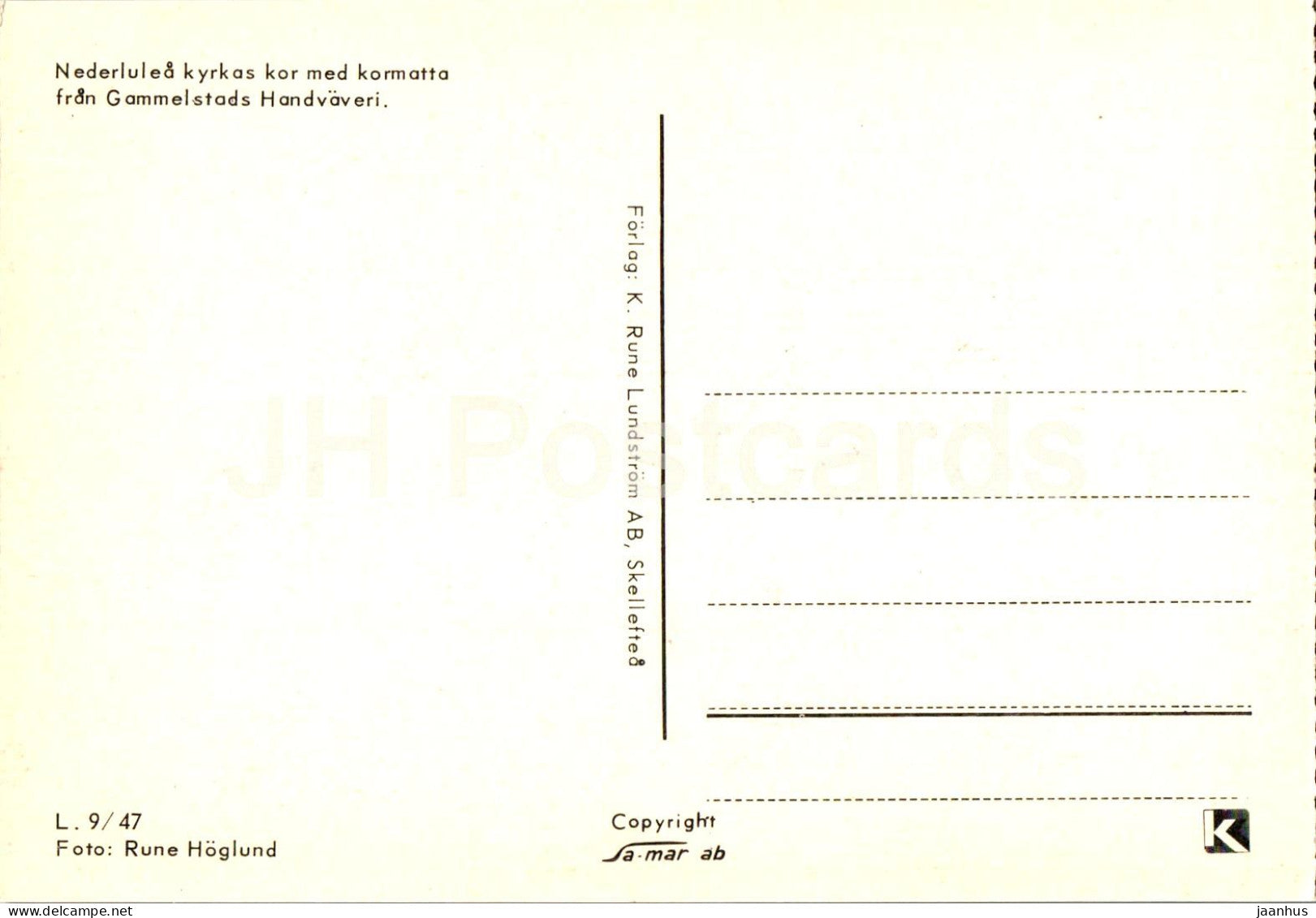 Nederlulea Kyrkas kor med kormatta fran Gammelstads Handvaveri Nederlulea Church chorale - 9/47 - Suède - inutilisé