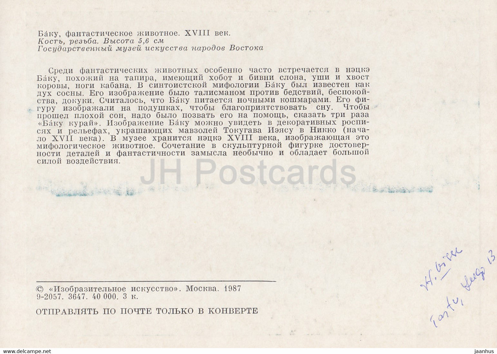 Netsuke - Bakou - os - Art japonais - 1987 - Russie UUSR - inutilisé