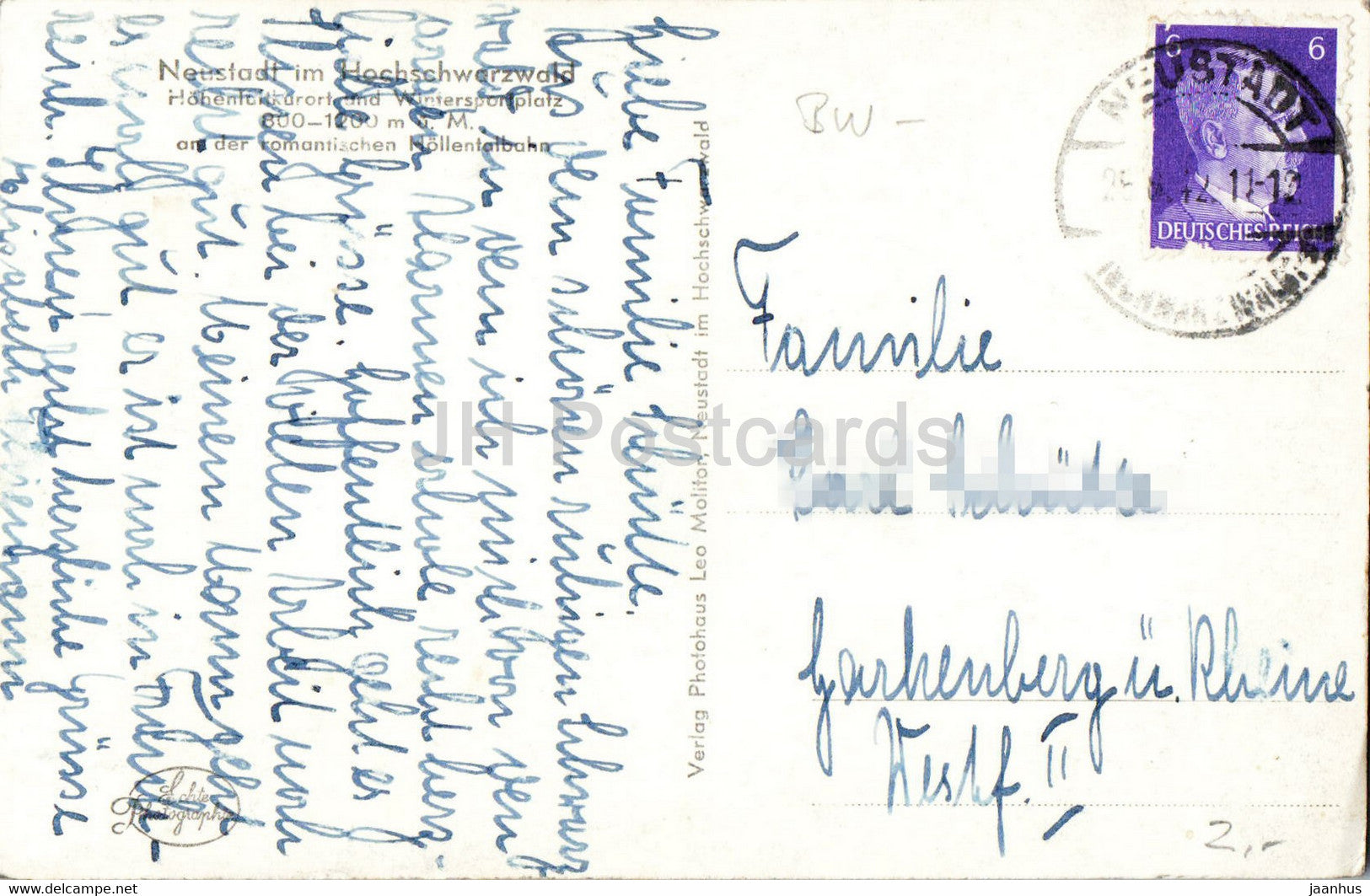 Neustadt i Hochschwarzwald - carte postale ancienne - 1942 - Allemagne - utilisé