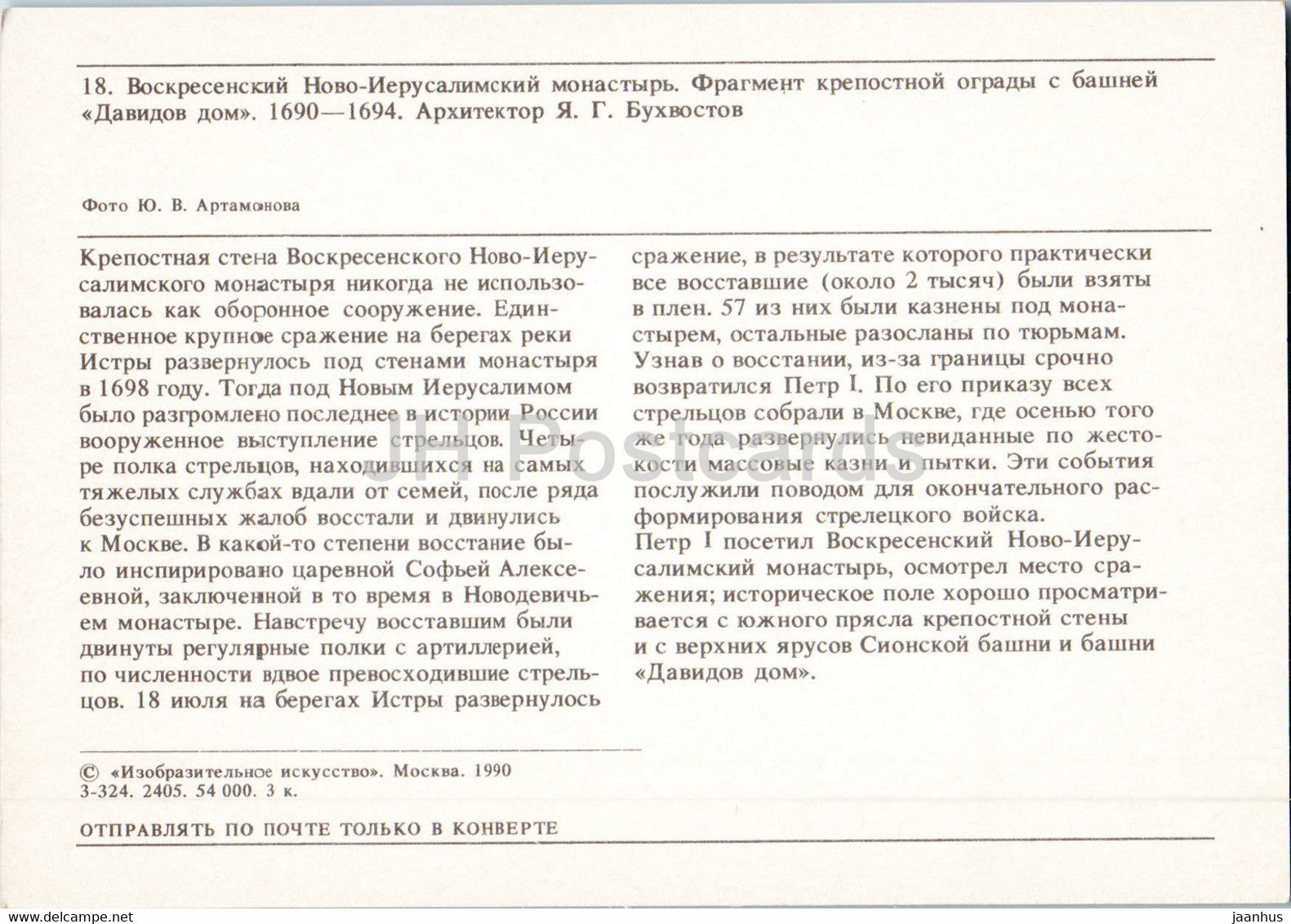 Monastère de la Nouvelle Jérusalem - Tour de la Maison de David - 1990 - Russie URSS - inutilisé