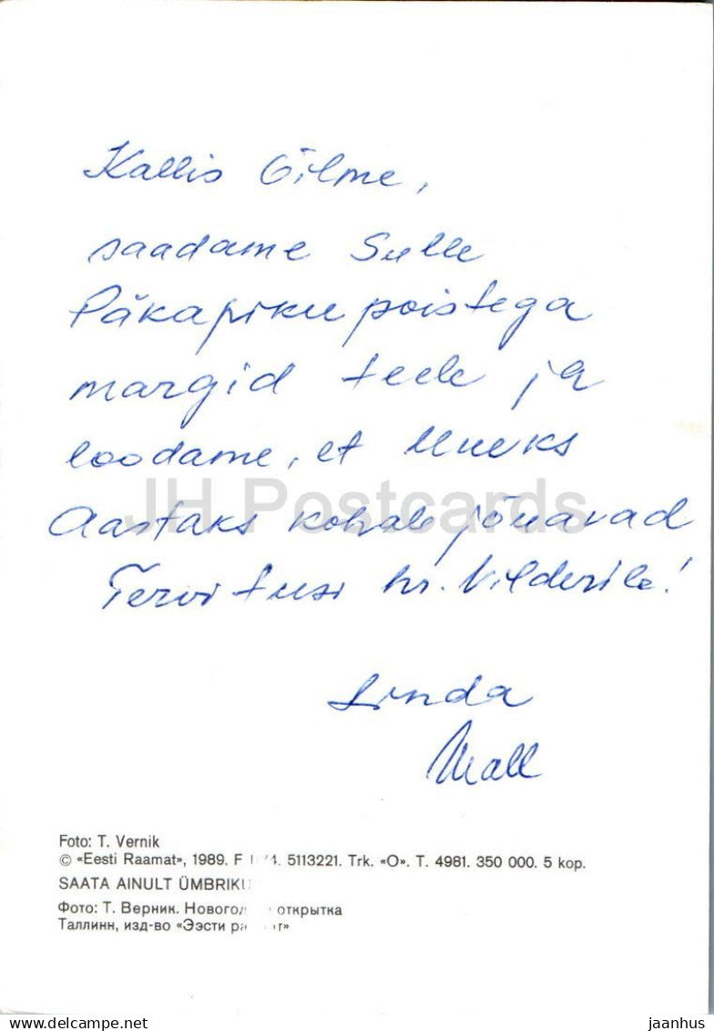 Carte de voeux du Nouvel An - 1 - nain - marionnette - 1989 - Estonie URSS - non utilisée