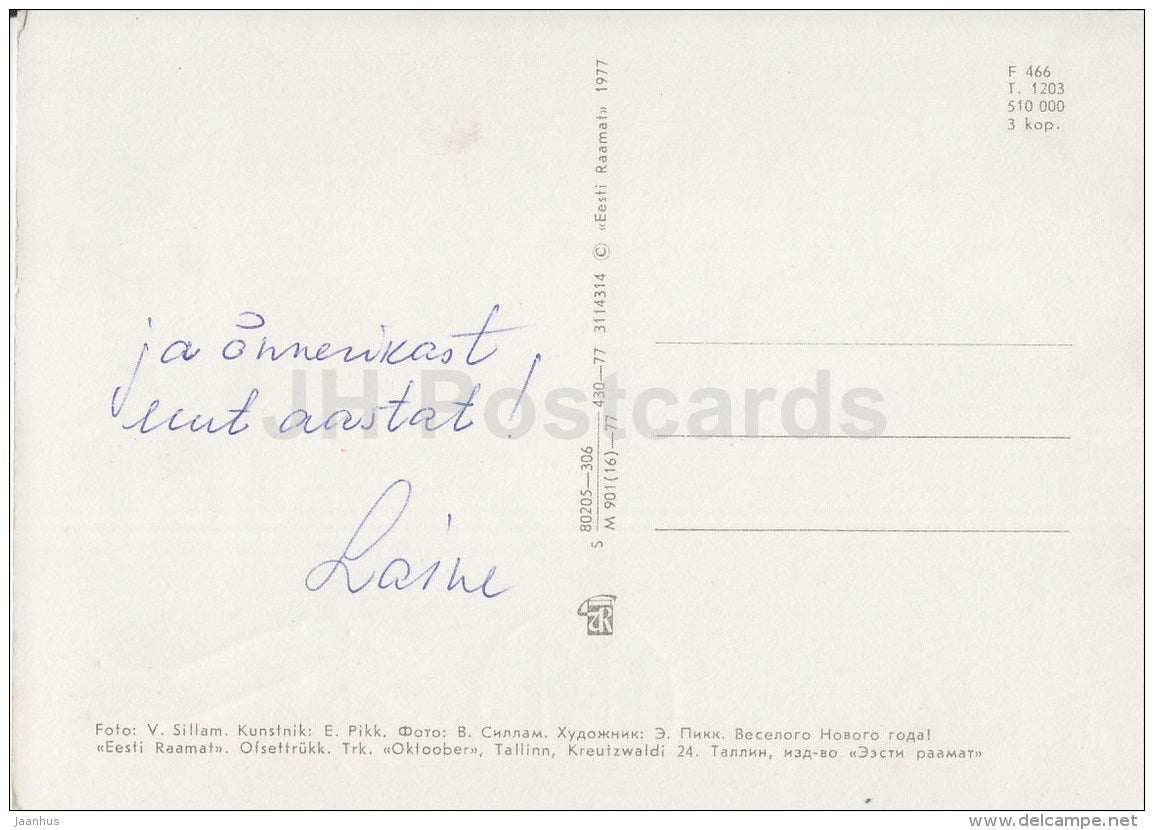 Carte de vœux du Nouvel An - 1 - cadeaux - décorations - 1977 - Estonie URSS - utilisée