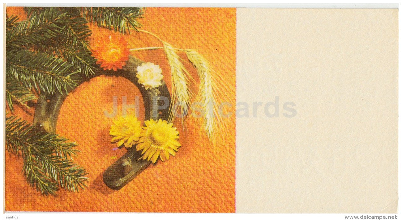 Carte de vœux du Nouvel An - 1 - fer à cheval - fleurs - 1975 - Estonie URSS - utilisée