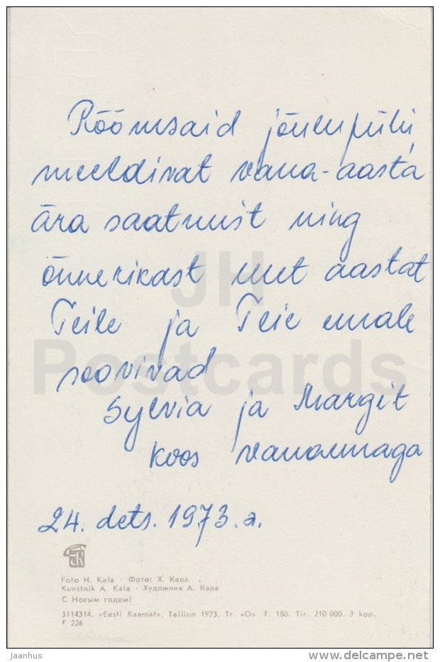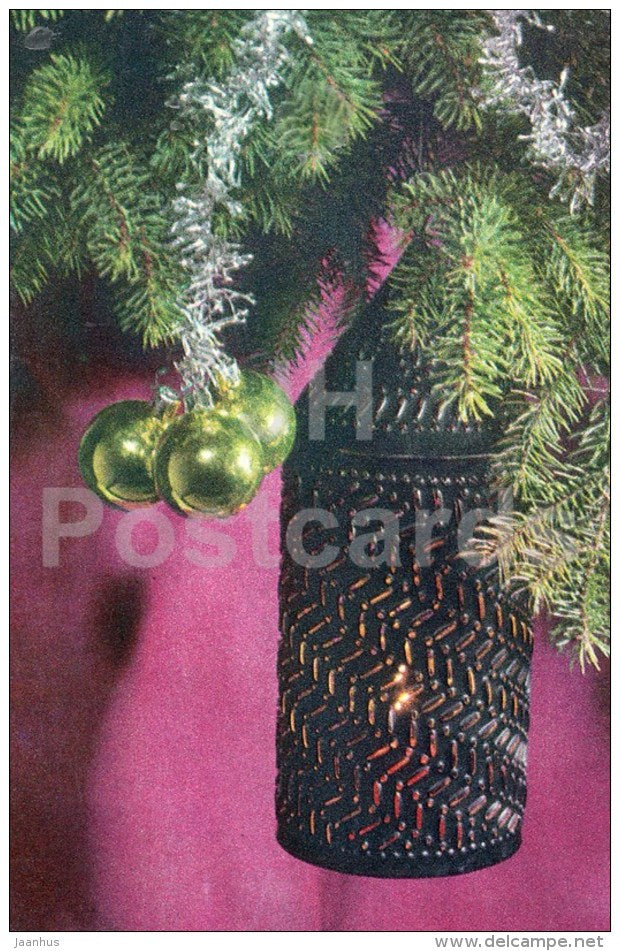 Carte de vœux du Nouvel An - 1 - lanterne - décorations - 1973 - Estonie URSS - utilisée
