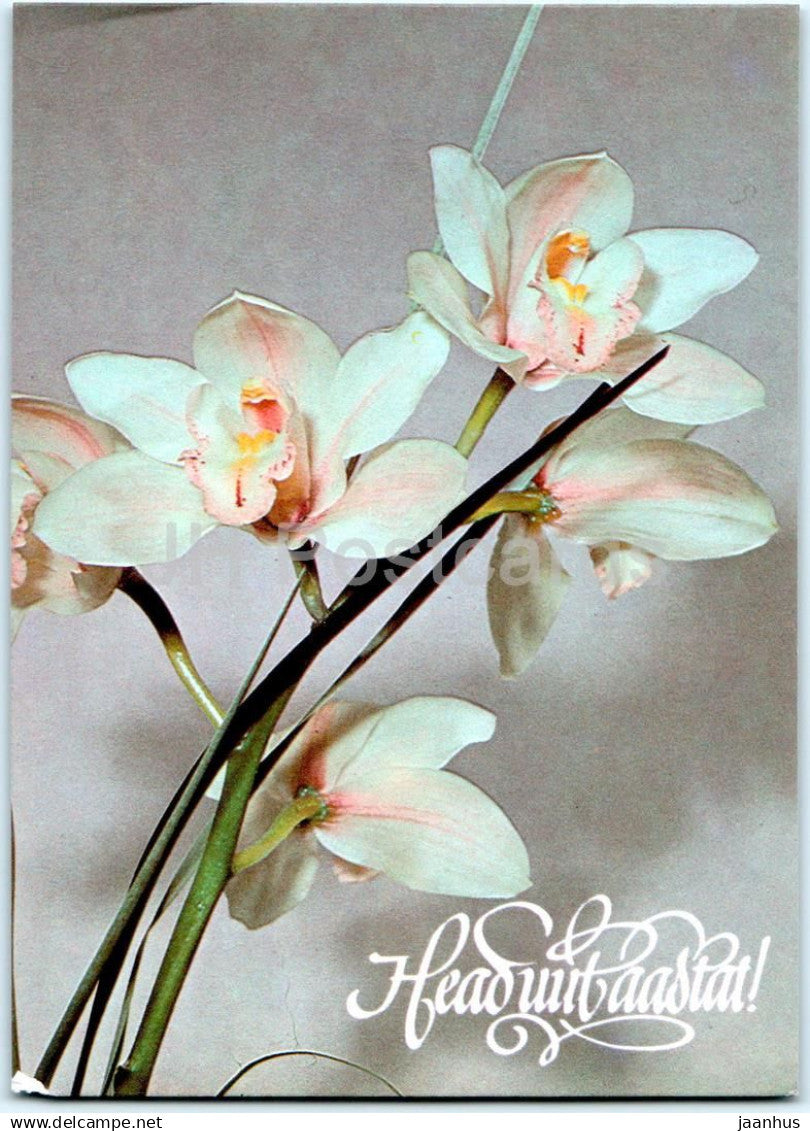 Carte de voeux du Nouvel An - 1 - orchidée blanche - fleurs - 1989 - Estonie URSS - utilisée