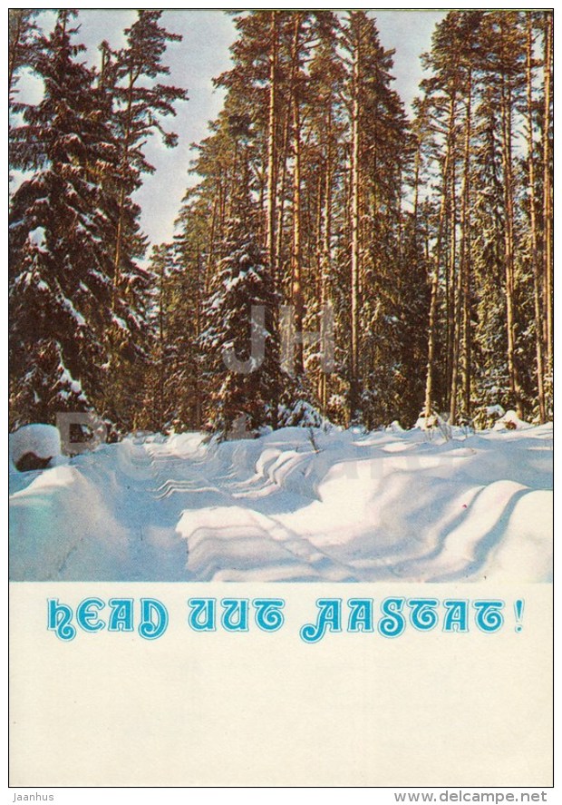 Carte de vœux du Nouvel An - 1 - route d'hiver - 1980 - Estonie URSS - utilisée
