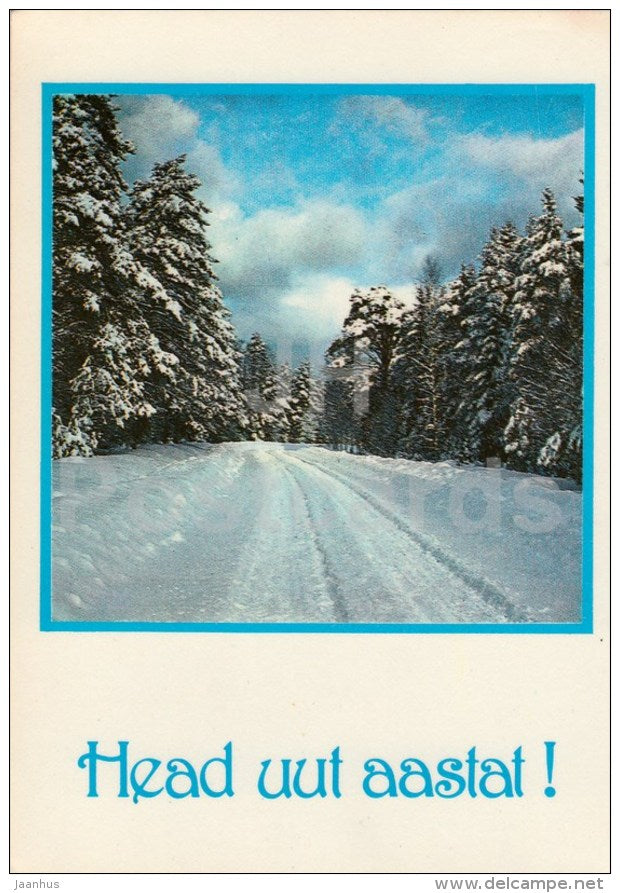 Carte de vœux du Nouvel An - 1 - route d’hiver - 1983 - Estonie URSS - utilisée