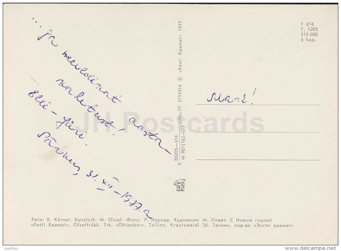 Carte de vœux du Nouvel An - 3 - décorations - 1977 - Estonie URSS - utilisée