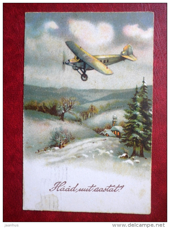 Carte de vœux du Nouvel An - avion - hiver - HWB SER 2643 - circulée en 1937 - Estonie - utilisée