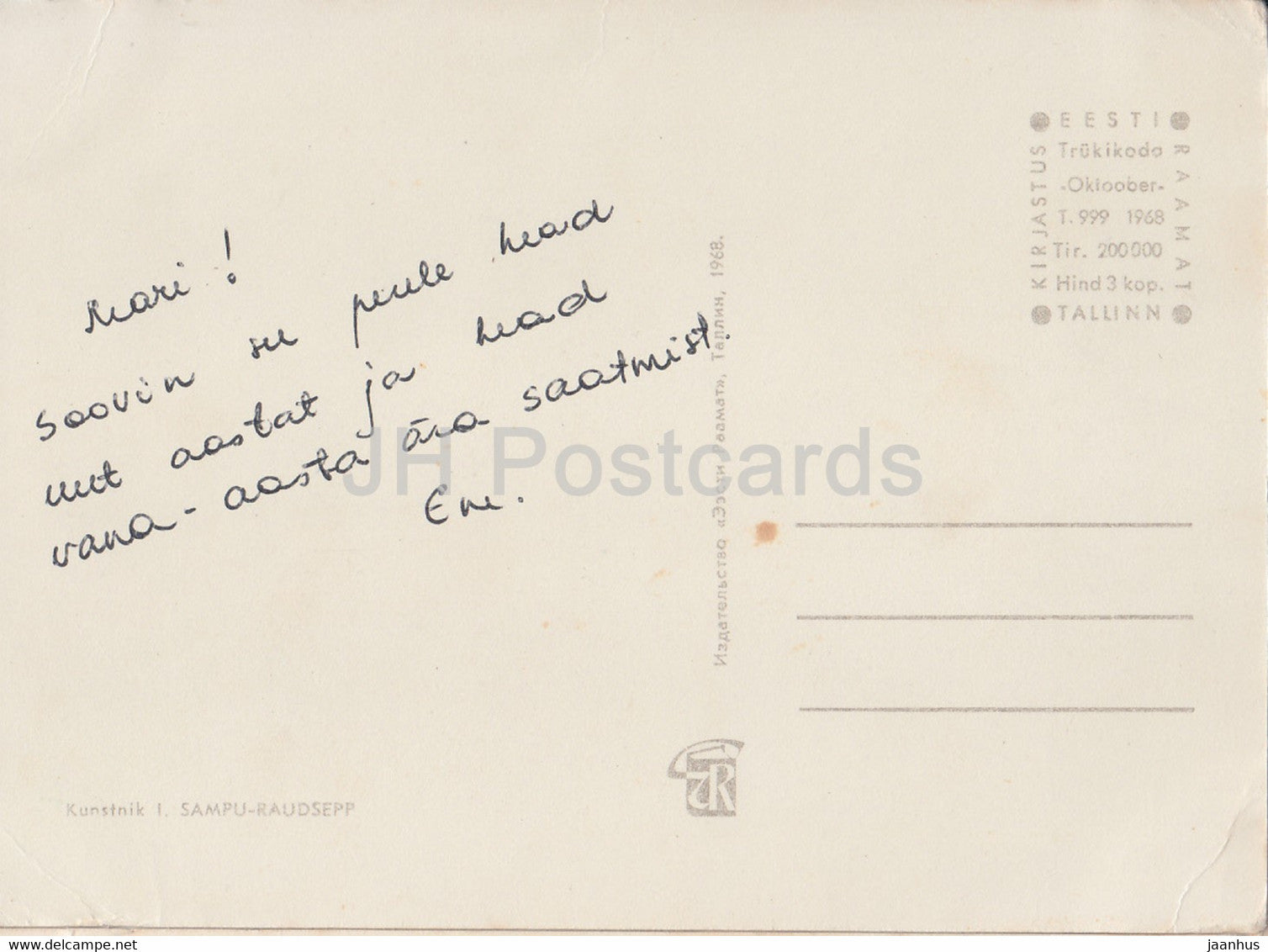 Carte de vœux du Nouvel An par I. Sampu Raudsepp - costumes folkloriques - Chèvre de Noël - 1 - 1968 - Estonie URSS - utilisé