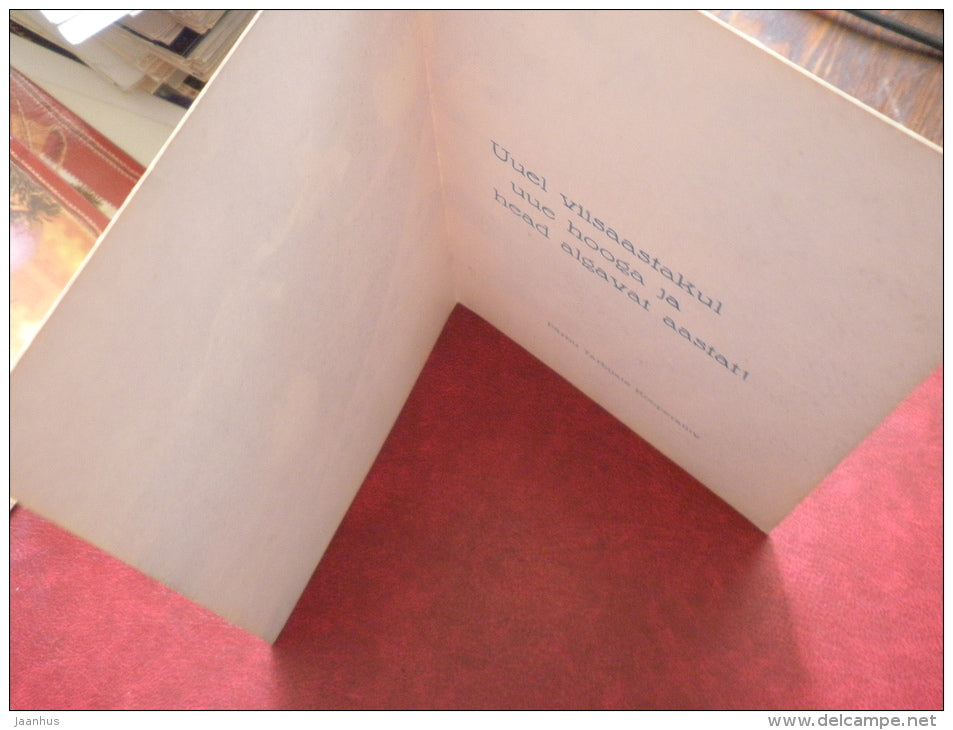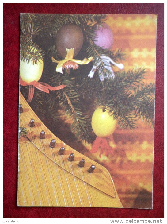 Carte de vœux du Nouvel An - Cithare estonienne - décorations - 1985 - Estonie URSS - utilisée