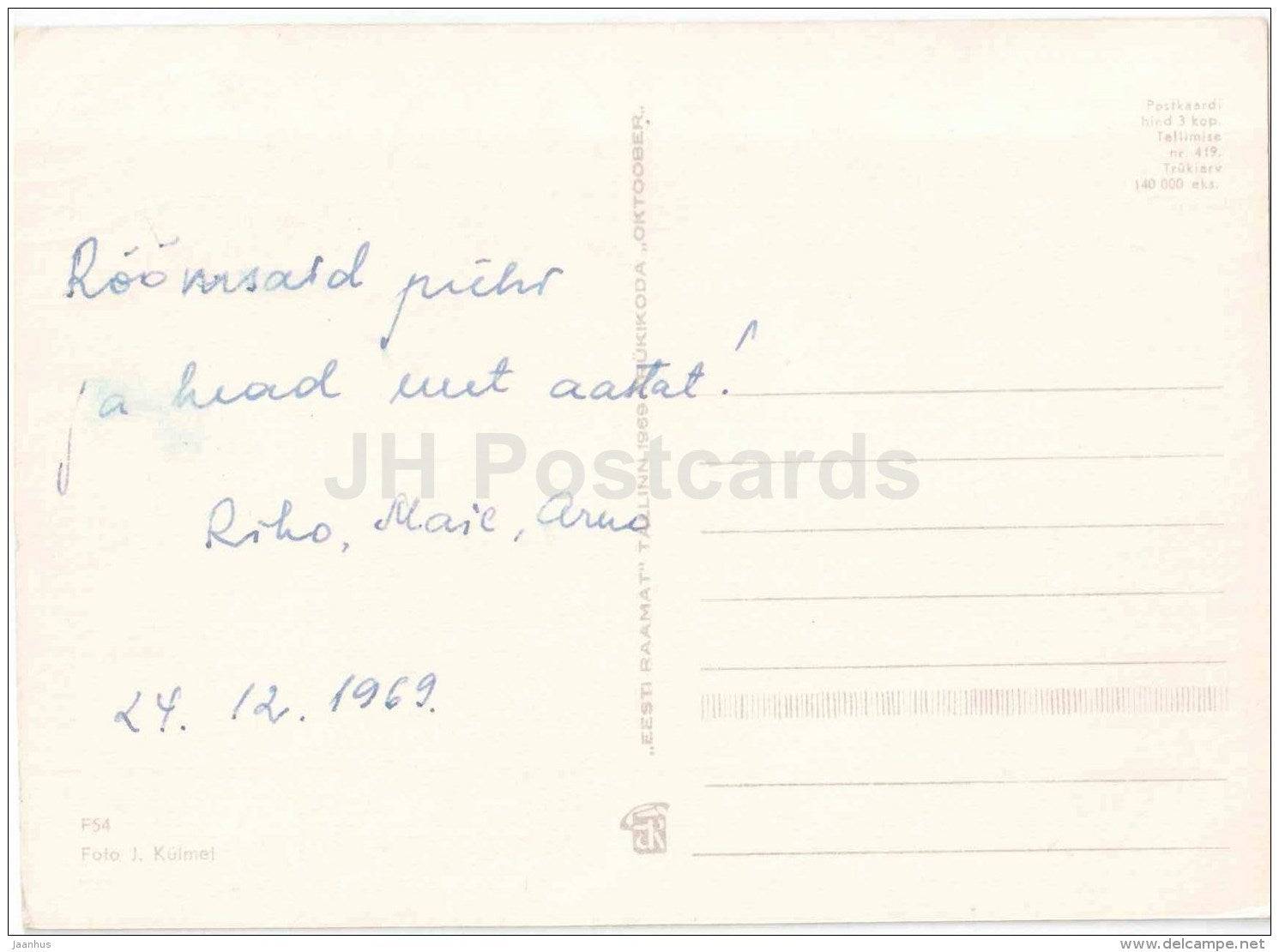Carte de vœux du Nouvel An - artisanat - caisses en bois - 1969 - Estonie URSS - utilisé