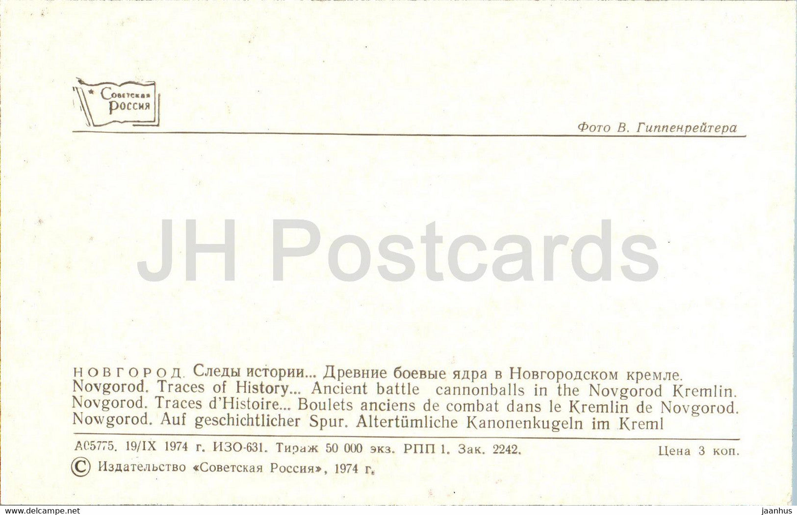 Novgorod - Anciens boulets de canon de combat dans le Kremlin de Novgorod - 1974 - Russie URSS - inutilisé