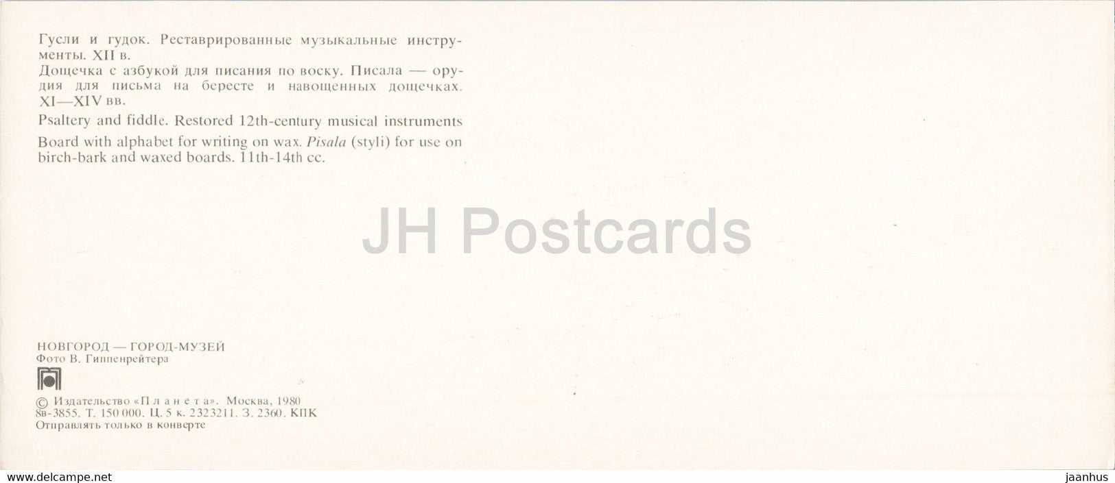 Novgorod - Psaltérion et violon - tableau avec alphabet pour écrire sur cire - 1980 - Russie URSS - inutilisé