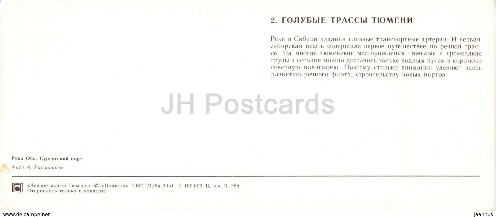 Fleuve Ob - bateau à voile - grue - Industrie pétrolière - Sibérie - 1982 - Russie URSS - inutilisé