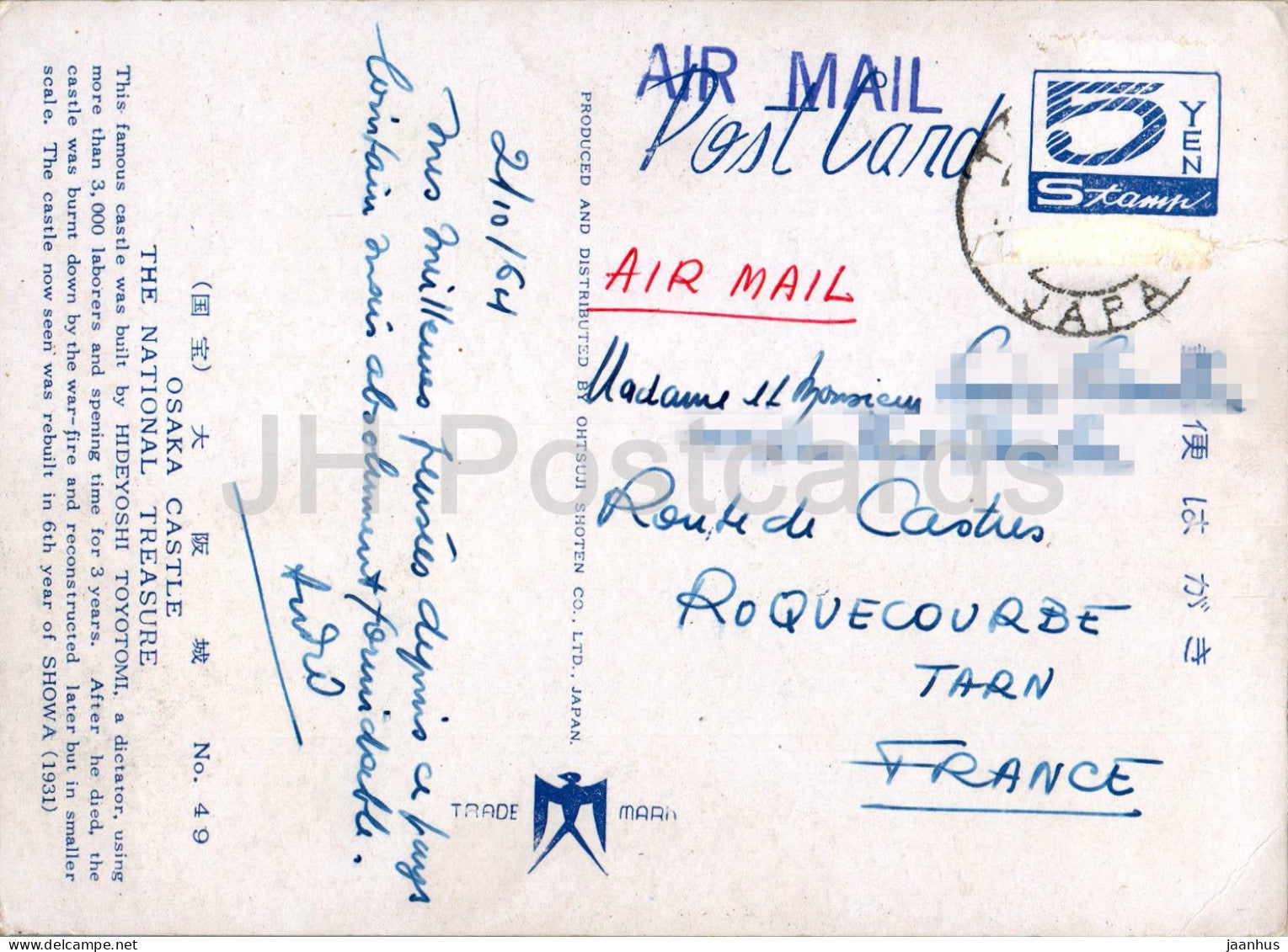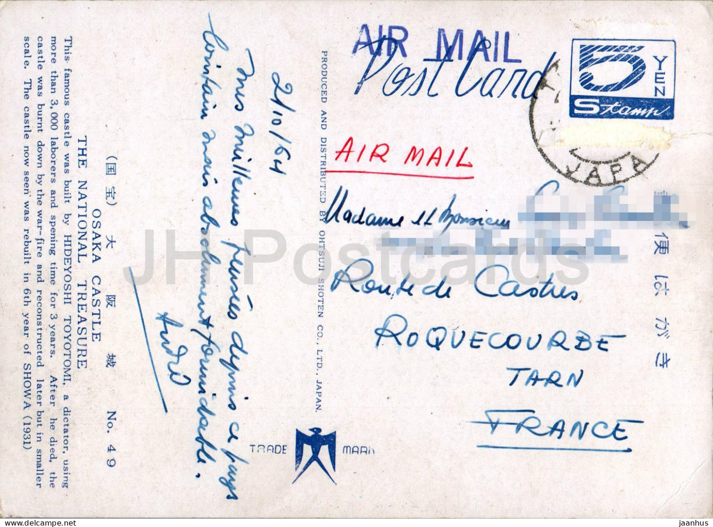 Château d'Osaka - Le trésor national - 49 - 1964 - Japon - utilisé