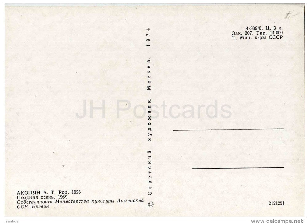 peinture de A. Akopyan - Fin de l'automne, 1969 - champ - art arménien - inutilisé