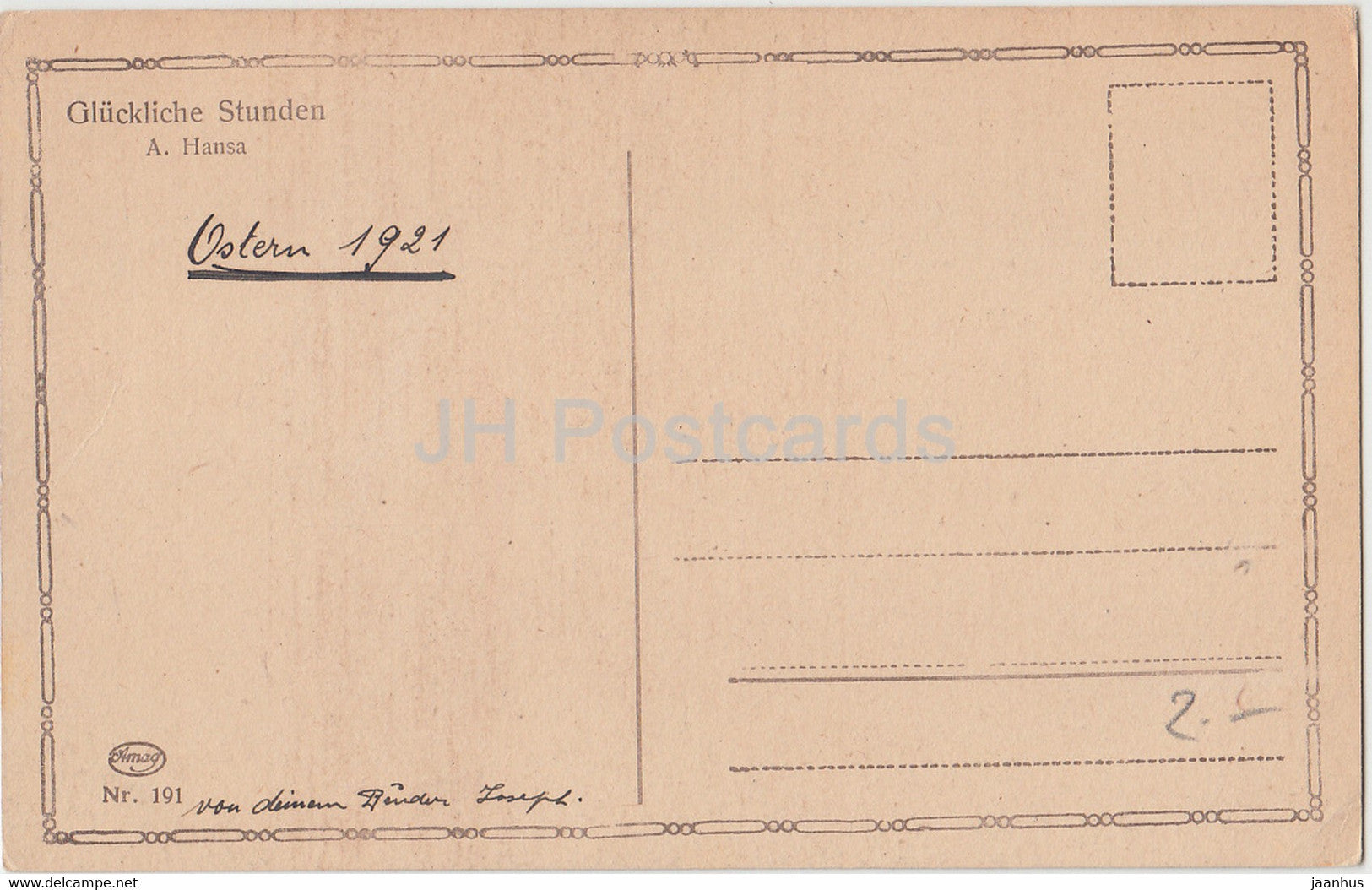 peinture de A Hansa - Gluckliche Stunden - Art allemand - Amag 191 - carte postale ancienne - Allemagne - utilisé