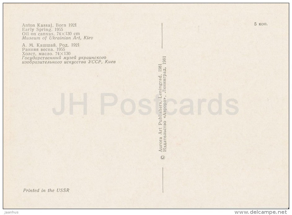 peinture de A. Kassay - Début du printemps, 1955 - Art ukrainien - 1981 - Russie URSS - inutilisé