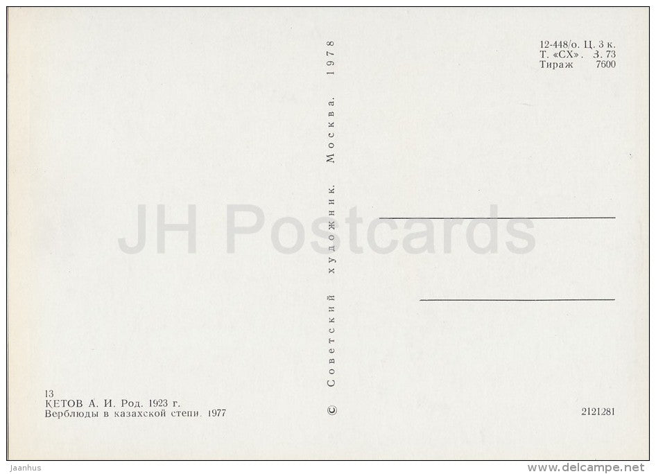 peinture de A. Ketov - Chameaux dans la steppe kazakhe, 1977 - Art russe - Russie URSS - 1978 - inutilisé