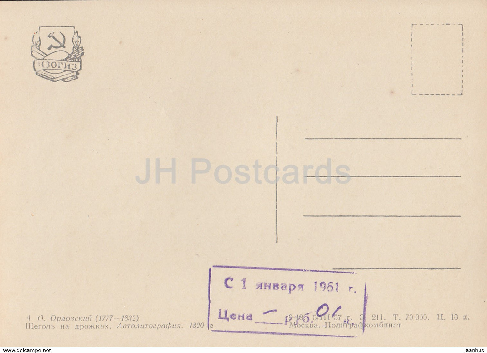 peinture de A. Orlovsky - calèche - chien - art russe - 1957 - Russie URSS - inutilisé