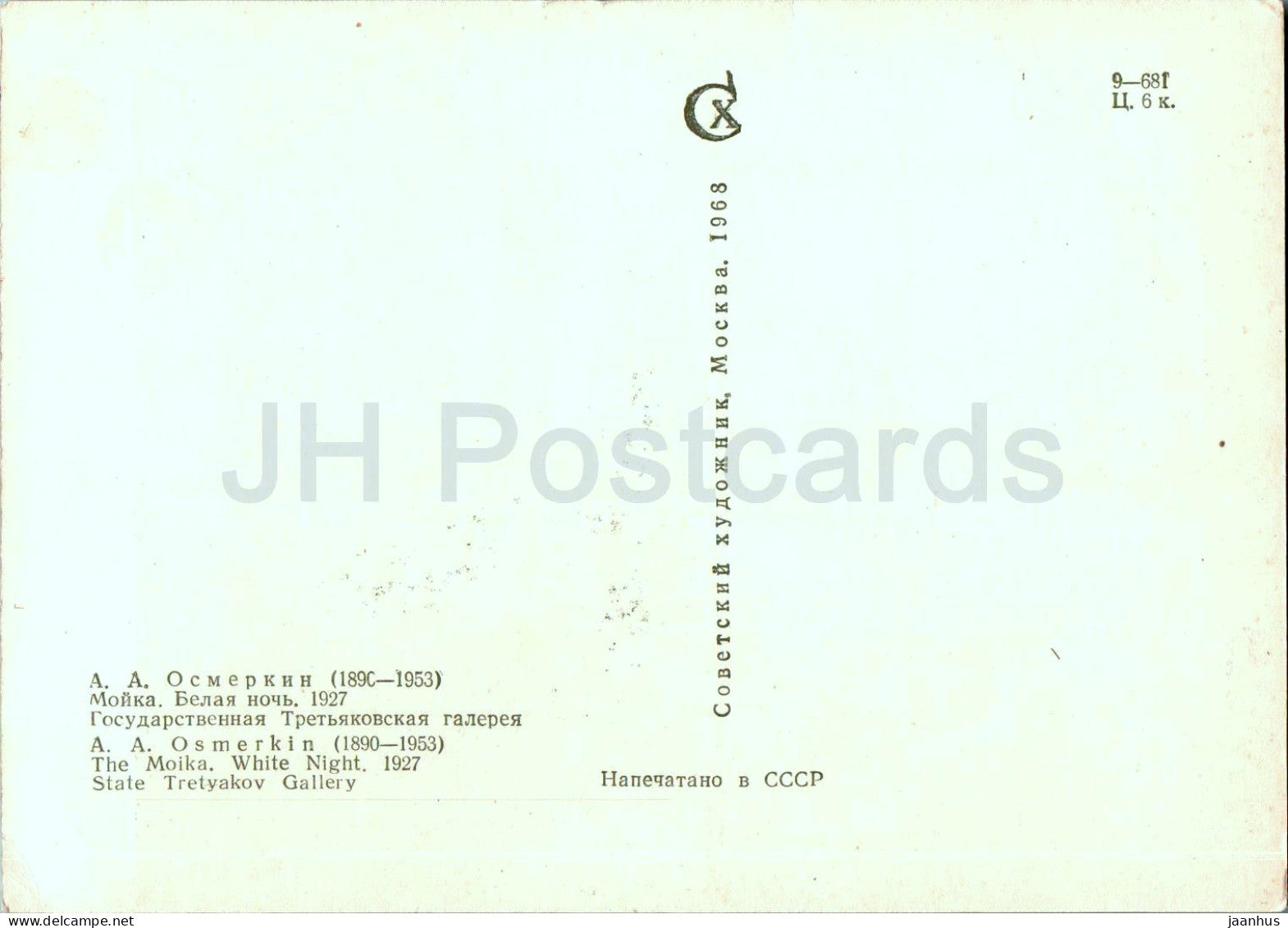 peinture de A. Osmerkin - La Moïka . Nuit Blanche - Art russe - 1968 - Russie URSS - inutilisé