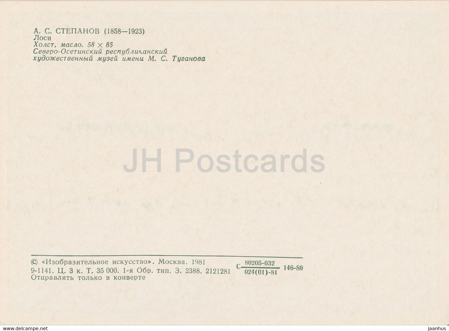 peinture de A. Stepanov - Elks - animaux - Art russe - 1981 - Russie URSS - inutilisé